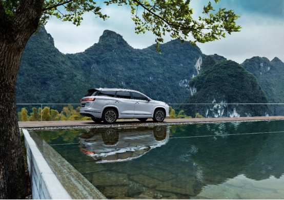 自然美学与匠心交织,勾勒精致优雅轮廓。全新山海L9将山海共生美学设计语言融入每一处细节,标志性的“山海家族微笑前脸”,传递出如同家人般的温暖与亲和力,迎接每一次的旅程相伴。车身侧面 “峰峦拢雾腰线”,遒劲有力而又不失飘逸灵动,勾勒出优雅而充满力量感的姿态。“行云式环绕超长灯带”与“瀚海流光尾灯”如同星河洒落,成为夜色中一道流动的风景线。车内 “流水曲觞内饰”营造出环抱式的沉浸氛围,“山海画卷中控台”则将山水诗意与前沿科技完美结合,搭配触感细腻、视觉精美的“水晶按钮空调面板”,共同构成了兼具视觉与触觉享受的座舱空间。