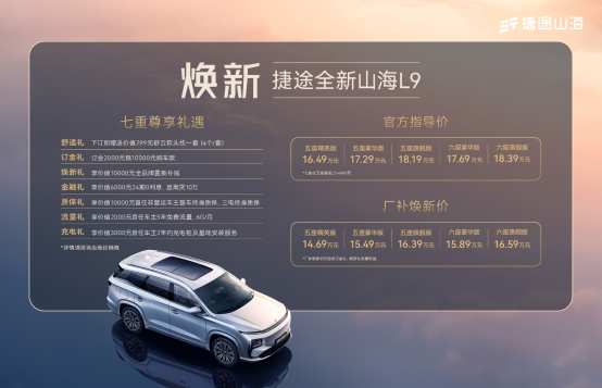 为满足消费者的用车需求,全新山海L9上市即同步推出诚意满满的购车政策,消费者下订即可享受“购车七重礼”。