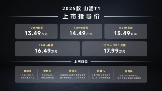 为助力用户轻松邂逅2025款捷途山海T1的独特魅力,捷途汽车还同步推出了诚意满满的购车权益,下订即可享受“购车5重礼”: