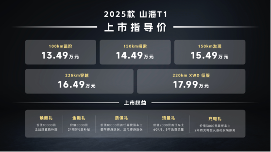 本次活动中,代立宏宣布2025款捷途山海T1正式上市,售价13.49万-17.99万,五大优惠购车政策,也为喜欢方盒子的粉丝带来超值福利。新车型不仅采用了荣获德国红点大奖的外观设计,也是首款纯电续航超220km的混动方盒子。三电机加43.2度大电池的越级配置,加上捷途独有的XWD全自动智能四驱黑科技,造就了同级方盒子的配置天花板。2025款捷途山海T1不仅为插混方盒子树立了更高的产品标准,也展现出推动方盒子品类价值升级的坚定决心。