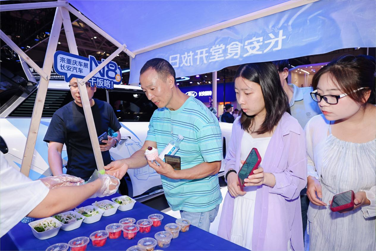 在展示科技硬实力的同时,长安汽车也以花式宠粉拉近与观众的情感距离。现场不仅可免费领取解暑冰淇淋,长安还别出心裁地将“长安食堂”搬进展馆,暖心发放花卷,让展台充满了浓浓的烟火气与亲和力。